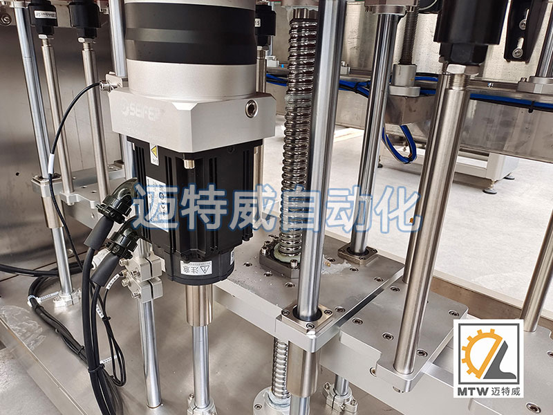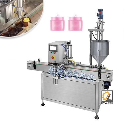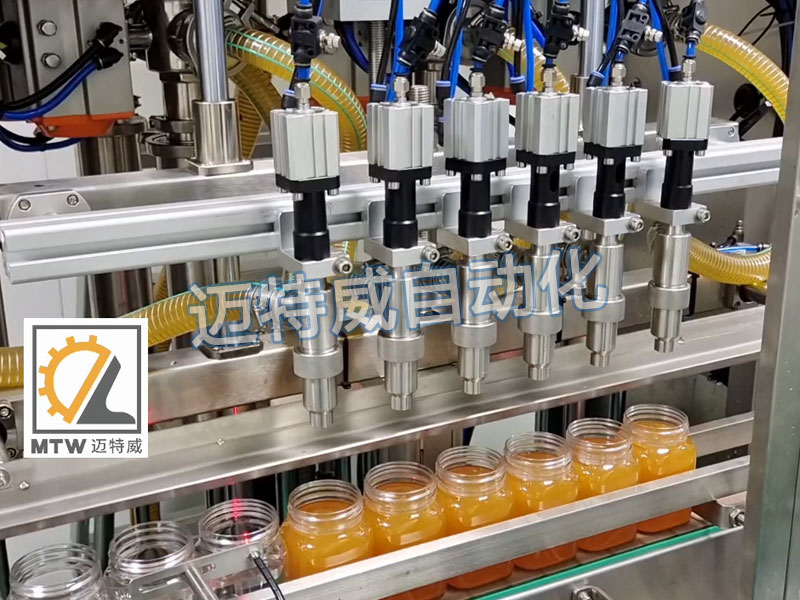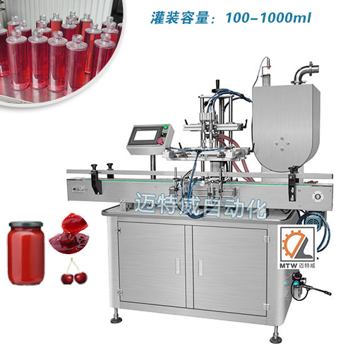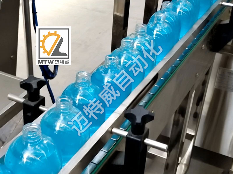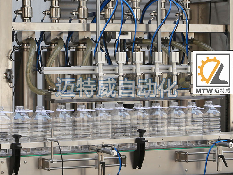 全自動液體灌裝機采用伺服活塞灌裝機灌裝,活塞缸體控制灌裝量,灌裝量可在100-1000、200-2000、500-5000ml范圍內任意選擇調整,適用于各種水劑液體、粘稠液體灌裝,灌裝不同物料,兼容性強。