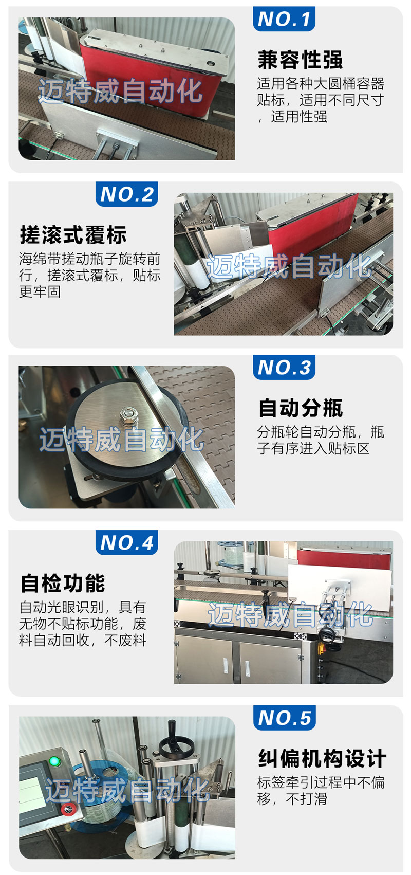 針對體積較大的圓桶設計,用于圓桶的單側面自動貼標。