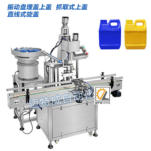 單頭伺服旋蓋機主要適用于各種塑料瓶和玻璃瓶的塑料或金屬螺紋蓋、防盜蓋旋蓋。