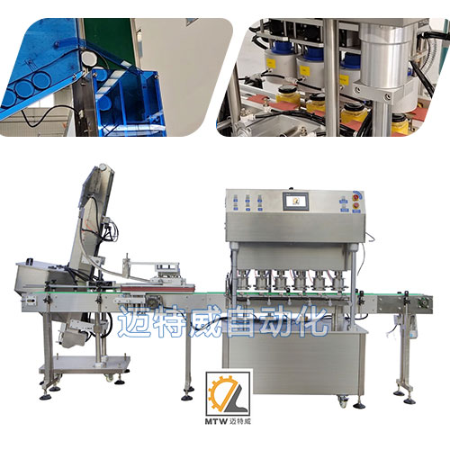 ● 該機采用直線式進瓶,提高旋蓋速度,適用瓶子誤差的最大化;